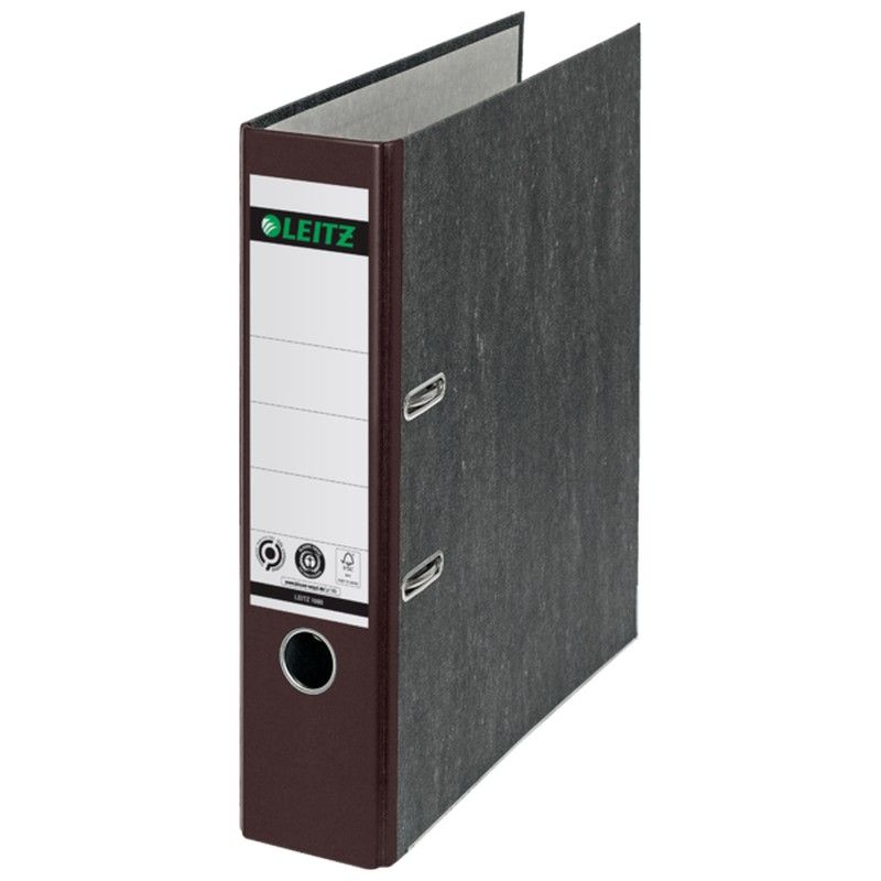 Classeur à levier neutre en CO2 Leitz. Carton marbré. 180º. DIN A4. Dos 80 mm. brun