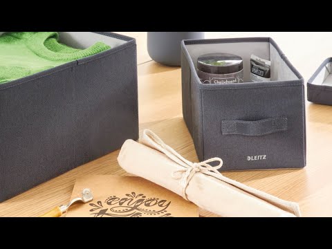 La gamme d’accessoires de rangements en tissu Leitz vous permet de vous sentir chez vous où que vous alliez durant votre journée. Avec son design minimaliste et sa finition en velours gris mat, vous pouvez rester organisé tout en donnant du style à votre maison et vos espaces de travail. Les boîtes de rangement en tissu Leitz sont idéales pour ranger les accessoires de bureau tels que les chargeurs ou les agrafeuses afin de les garder organisés et faciles d'accès. À la maison, les boîtes de rangement speuvent être utilisées pour ranger des photos et d'autres petits objets sur des étagères. Fabriqué à partir d'un matériau souple renforcé avec du carton recyclé pour plus de solidité et de durabilité. Au total, 57% de contenu recyclé. Lorsqu'elles ne sont pas utilisées, les boîtes de rangement peuvent être repliées pour être facilement rangées. Ces petites boîtes de rangement avec poignées sont le complément parfait à votre maison ou à votre bureau pour vous assurer de rester détendu et productif toute la journée.