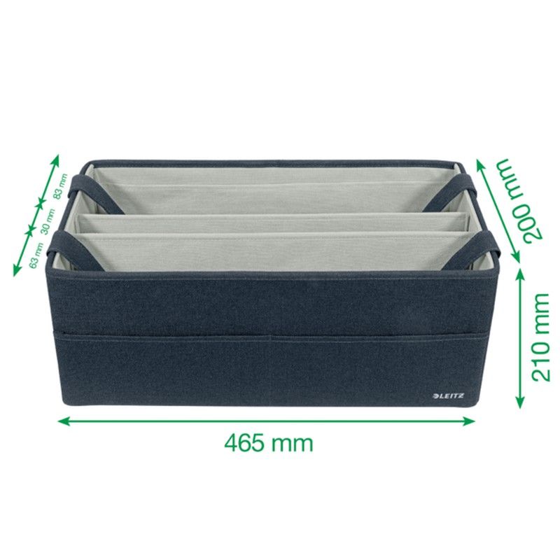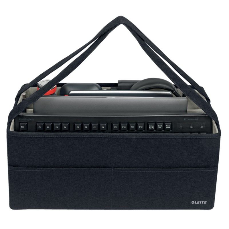 La gamme d’accessoires de rangements en tissu Leitz vous permet de vous sentir chez vous où que vous alliez durant votre journée. Avec son design minimaliste et sa finition en velours gris mat, vous pouvez être élégant tout en restant organisé au bureau, à la maison et partout ailleurs. La sacoche de rangement en tissu Leitz comporte trois compartiments distincts qui vous permettent de ranger et de transporter tout ce dont vous avez besoin pour la journée. Ce sac de rangement moderne et pratique offre suffisamment d'espace pour contenir un ordinateur portable, un clavier, une souris, un câble de chargement, un casque, un cahier et une bouteille d'eau. Fabriqué à partir d'un matériau souple renforcé avec du carton recyclé pour plus de solidité et de durabilité. Au total, 57% de contenu recyclé. Lorsqu'elle n'est pas utilisée, la boîte de rangement peut être repliée pour être facilement rangée. Ce sac de rangement avec poignées est le complément parfait à votre maison ou à votre bureau pour vous assurer de rester détendu et productif toute la journée.